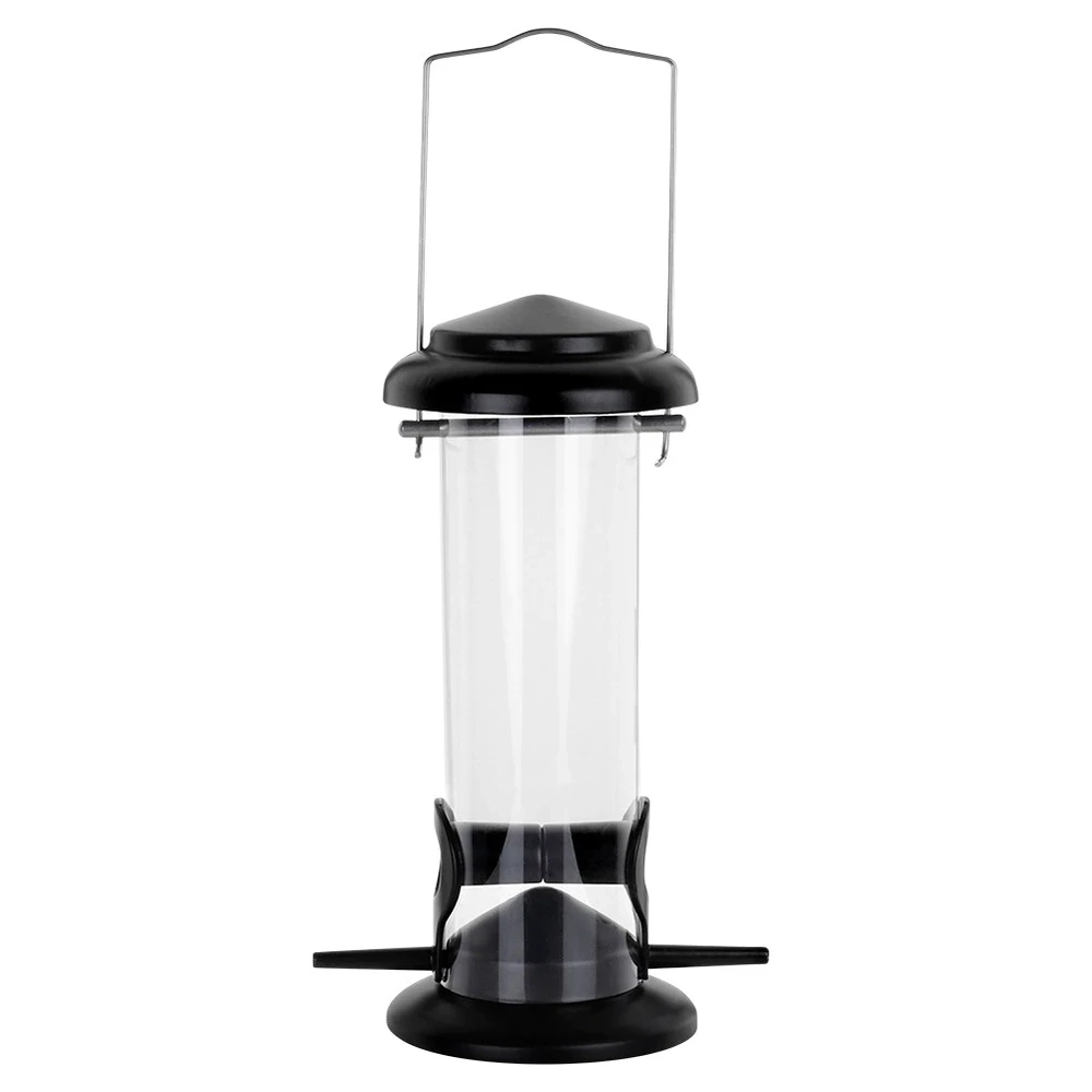 Ideal für Körner, Samen oder anderes Vogelfutter. Mit den kompakten Maßen von 14 x 9,5 x 23 cm und einer Öffnung von 6,5 cm Durchmesser eignet er sich perfekt zur ganzjährigen Vogelfütterung – besonders im Winter, wenn natürliche Nahrung knapp wird.