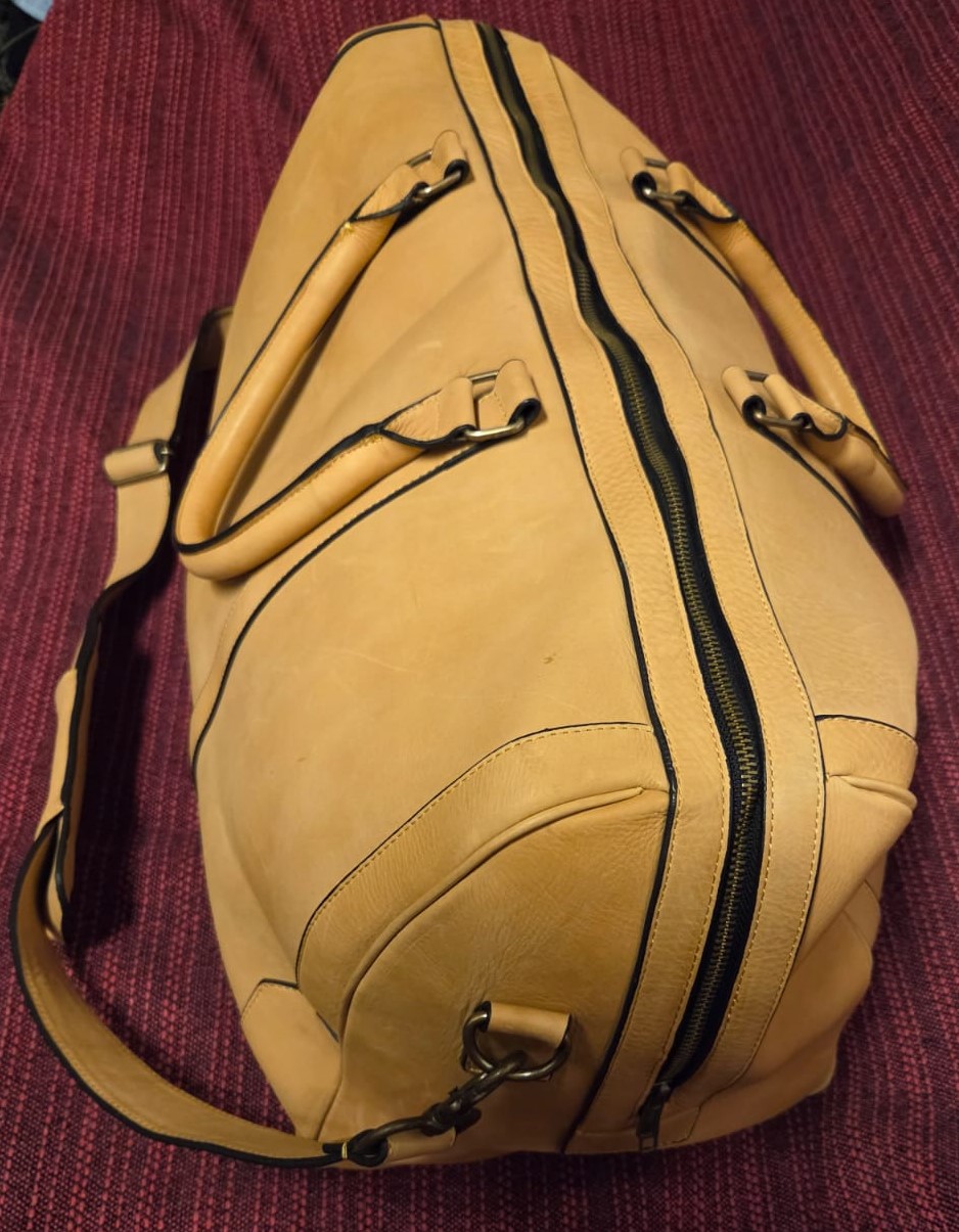 „Handgenähte Ledertaschen – Jedes Stück ein Unikat“ Auftragsfertigung von handgenähten Reisetaschen und Sporttaschen aus echtem Volleder. Der regulare Verkaufpreis liegt bei 245,- Euro. Bei Vorbestellung und circa 3-4 Wochen Wartezeit kann die Reisetasche für 145,- Euro erworben werden. Bei Interesse bitte mailen oder anrufen.