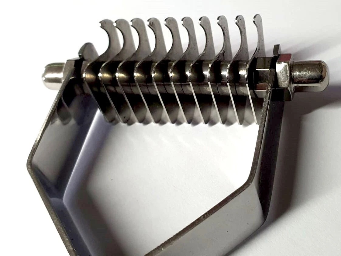 1x Entfilzungsstriegel: Wenn das Fell von Langhaar-Katzen oder Hunden schon verfilzt und verknotet ist - kommt man mit einem Striegel oder Kamm nicht mehr durch das Fell und kann diesen Entfilzungsstriegel einsetzen (Er ist mit Klingen versehen und durchschneidet gefahrlos die verfilzten Stellen im Fell . Er ist die Alternative zur Schere mit der der gesamte Fellknoten heraus geschnitten werden müsste).